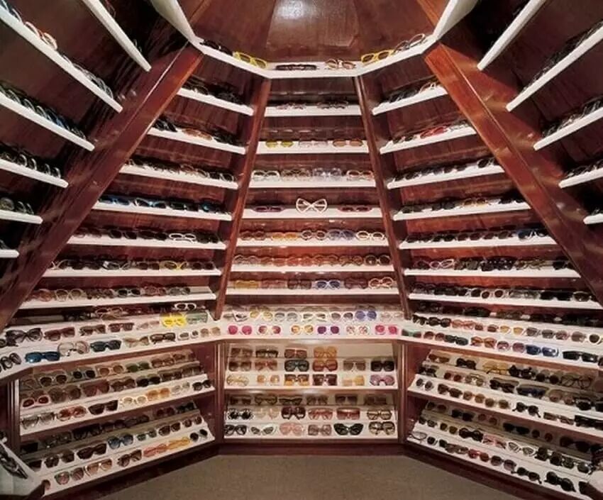 虽然不知道这个数量是不是有夸张的成分,但是走进他家看他的墨镜柜,真的很容易迷失在里面啊…