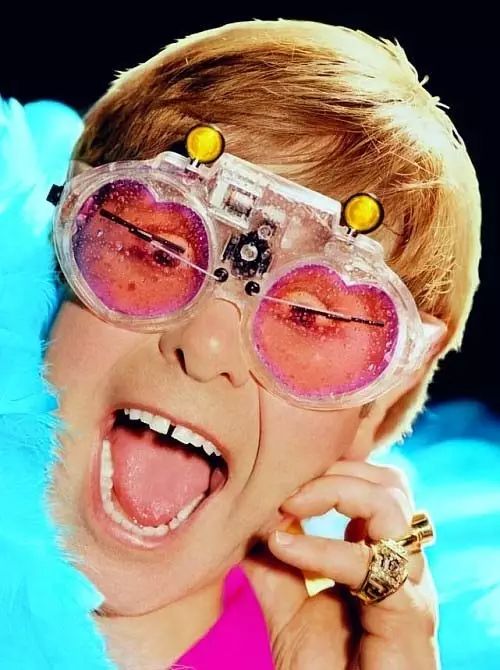 墨镜简直就是Elton John最大的造型特征了,他拥有各种颜色的墨镜,比如白边深棕色的。