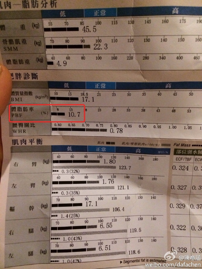 跑步10年的陈意涵体脂率仅10.7%?她本人这样说 跑步学院 港台女星 2020-05-18 12:14:21 796 创作不易,用心坚持,欢迎请BaGua喝几杯爱心咖啡!打赏并支持本文 打赏并删除本文 跑步,很像谈恋爱,你不知道你的身体什么时候背叛你,但你永远不能放弃他,用耐心、包容、痛苦,来成就最后的美好。 ——陈意涵 我们都知道陈意涵是个运动发烧友,随便翻翻她的微博,瑜伽、单车、滑雪、攀岩、游泳、舞蹈、羽毛球,拳击几乎无所不能。虽然现在已经38岁的妈妈,但无论怎么看她还是个元气满满的少女啊。毕竟陈意涵每天晨跑都是8公里起步,10公里是基本配备,甚至最多可以跑20+公里,她说跑少了自己会觉得空虚。坚持运动也让她保持着健康的好身材,身高163cm,体重45.5kg,健美级别的体脂率。而陈意涵在2014年就晒出过自己10.7的体脂,不过却在全段时间却突然在知乎上引起很多人的讨论——「陈意涵的体脂率只有11%」是真的吗?随着话题的扩大,有人分析她为什么体脂低的原因,有人提出质疑说「体脂这么低她应该浑身肌肉」。没想到这一讨论竟然引出了陈意涵本人的亲自回答,小编整理过来,以下内容为陈意涵本人回答。关于我体脂11%这件事,其实我也不知道要来解释什么,2014年1月的时候我po出了一张我刚测出来InBoby的数据,上面的体重是45.5,体脂10.7。那时候我正在拍《闺密》,你们看电影就知道啦,我并没有瘦到你们所谓的皮肤粗糙,气色不好。(咦,但我电影里都在失恋…..好像要一直气色不好耶,这样不公平)而且话说我体脂11%的时候也没有腹肌。(我大概是一辈子再怎么努力都不会有腹肌的人吧,所以给我细一点的腿也是很公平的,哈哈)(一般应该是这样) · 11%~13% 背肌显露,腹外斜肌分块更加明显(女子健美运动员竞技状态) · 14%~16% 背肌显露,腹肌分块更加明显 · 17%~19% 理想型 全身各部位脂肪不松弛,腹肌分块明显 · 20%~22% 理想型 全身各部位脂肪不松弛,腹肌开始显露,分块不明显 · 23%~25% 理想型 全身各部位脂肪基本不松弛,腹肌不显露 · 26%~28% 全身各部位脂肪就腰腹部明显松弛,腹肌不显露 · 29%~31% 腹肌不显露,腰围通常是81~85厘米 · 32%~34% 腹肌不显露,腰围通常是86~90厘米(我只能这样)(还找到了这张,为什么这么皱我真的不知道, 我在11月的时候体重比较轻,但体脂却比较高,所以肌肉比肥肉重很多的观念应该不用再提醒大家了吧)(还是忍不住要给大家科普一下)还有啊,关于体脂的数字,除非你是真的过胖到脂肪过多,或是很瘦但脂肪很多的泡芙人(听起很美味),或者因为健康的缘故必需要一直观察体脂的数字,你才需要特别关注。不然你其实只要买一条紧身一点的牛仔裤,永远保持你可以穿得进去就可以啦,毕竟体重数字每天都在变,若因为这样搞得自己不开心就很不值得。我以前为了要让体重机上的数字轻一点,甚至会忍住不喝水,上完厕所刷完牙,甚至想把头发剪短才会站上体重机。然后如果体重还是没有变轻的话,就会很不甘心,一整天都不想吃东西,到了下午就又会大吃;但如果体重变轻一点的话,就会更开心的去大吃庆祝(这就是本末倒置)。当然,体脂跟体重是不一样的,体脂也会因为你体内的含水量而影响测量的结果,家用的体脂机又比健身中心更容易不准确,真的想要量到非常准确的体脂量,不只仪器要很厉害,价钱也是要很厉害,所以,把钱去用来买一条贵一点紧一点的牛仔裤是最值得投资的啦!!结论就是,我体脂11是真的有过,但不建议大家追求那么低的体脂(因为月经真的会停)。我当时就是太爱跑步都不做重训,导致肌肉一直流失才会体脂低,(这件事告诉我们肌肉很难练,练了也会很快不见,要保持已经很难,所以千万别担心你举个哑铃就怕自己变成金刚芭比,因为这是根本是不可能的事喔~)作者:陈意涵陈意涵原创首发于知乎,著作权归作者所有今日福利你跑步多久了?体脂最低的时候是多少?怎么做到的?留言区参与互动,抽1名跑友 送出 《姿势跑法》一本(5月25日公布中奖名单)26岁小伙戴口罩夜跑半个月,结果肺「破」了!为何专家不建议戴口罩跑步 恭喜 Leaf 获得奖品 请于5月19日前填写地址领取奖品 创作不易,用心坚持,欢迎请BaGua喝几杯爱心咖啡!打赏并支持本文 打赏并删除本文 感谢您的支持鼓励,我会继续努力的!文章地址:用户邮箱:打赏金额:USDT 请输入数字点击”去打赏“,即可进行打赏支持本文章哦 陈意涵 About the Author 跑步学院 功能介绍:50万跑者都在关注!如果你想改善跑姿,提升配速,关注我就够啦! Related Posts 跑步10年的陈意涵体脂率仅10.7%?她本人这样说 2020-05-18 12:14:21 发表评论