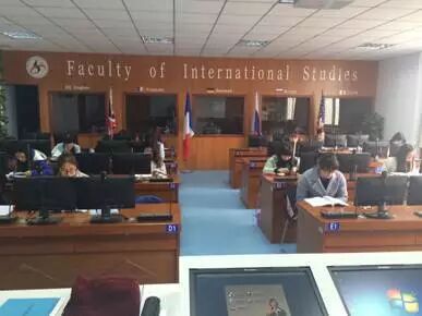 首先,这里是通往顶尖译员道路的第一步——Simultaneous Interpretation Classroom(同传翻译教室) 以及Interpreting Classroom(口译教室) 没错,这里还有培养优秀英语教师的欢乐课堂。外国语学院的师资队伍中,还有美丽帅气的异国面孔,来自法国的Oliver平易近人,Alice热情大方,他们是老师更是朋友。课下,外国语学院研究生与导师在Seminar(研讨会)中交流学习,碰撞思想的火花,探索学术的深渊。更有邀请国内外著名学者与外国语学院师生开展学术交流,与国际视野接轨,引进前沿学术理念。风华正茂,继往开来。外国语学院是河南师范大学目前规模最大的院系之一,创建于1975年的外语系,开展多门语种课程,常年聘有英、美、加、日等多位国际教师,并取得显著科研成果。据说,学英语能变性感,学法语能变优雅,学日语能变贤惠,学德语能变神秘,学俄语能变坚强,来外院get这些技能,培养女神气质,告别四六级烦恼,快速与国际接轨。 春风十里不如你——Faculty of International Studies河南师范大学研究生会欢迎大家踊跃投稿
