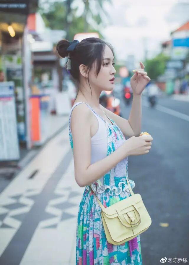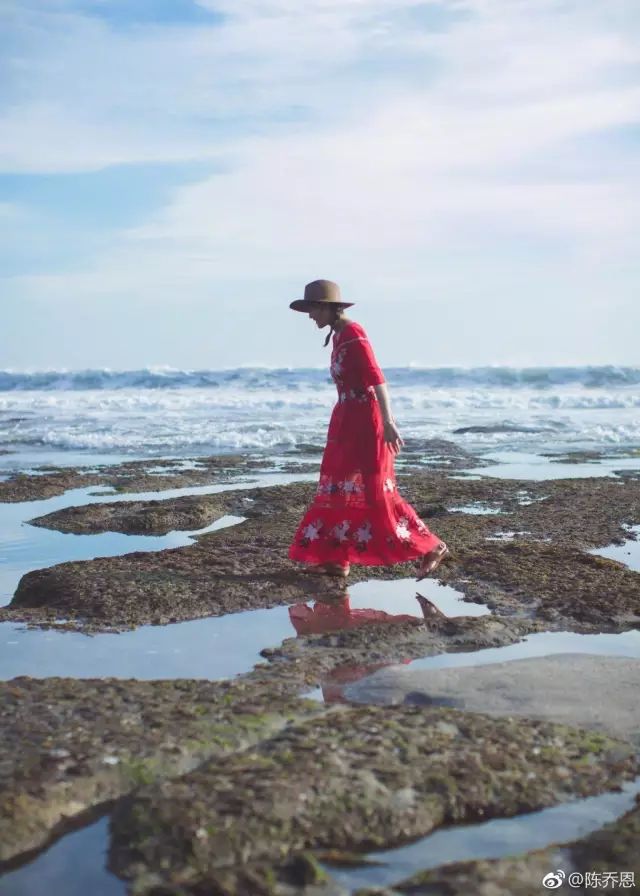 说起拍旅游照,陈乔恩绝对是个中高手。一条大红色印花连衣裙,一顶草帽,再加上女明星们最近都很喜欢的侧扎麻花辫,显嫩满分。