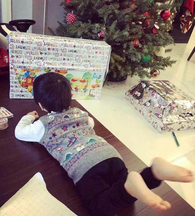 通过照片我们看到kimi都没穿鞋,外面套着一件睡衣就跑了出来,迫不及待想要拆礼物的心可见一斑!尽管还是看不到kimi的正脸,但是kimi的个头是真的长高了不少,俨然就是个小大人了。