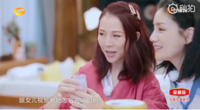 《妻子的浪漫旅行》中有一幕让我印象特别深刻,蔡少芬正坐在桌子前和女儿视频,胡可就走过来问她在干嘛,她说“我在教女儿冲奶粉呢。”