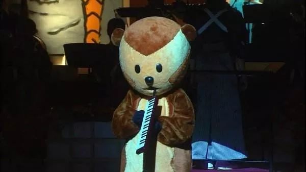 剧中的几场管弦乐团演出实在很炫,尤其是剧场版第五集桃丘大学学园祭时,龙太郎所带领的S乐团身穿纯黑的传统日是和服,很拉风的演奏了一首格什温《蓝色狂想曲》,搞怪的野田妹穿着玩偶服,办成呆萌的蒙哥(猫鼬)吉祥物,吹奏手风琴代替原曲中的钢琴,足足过了一把和交响乐队合作的瘾。