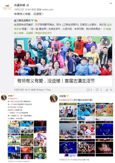 生活节期间邀请知名艺人戴佩妮、曹方、大飞、山人乐队打造音乐狂欢节;邀请历史学者余戈、英国厨师大米、著名作家马原、生活家杨一玻&侯佳欣夫妇,分享各自的云南生活故事。