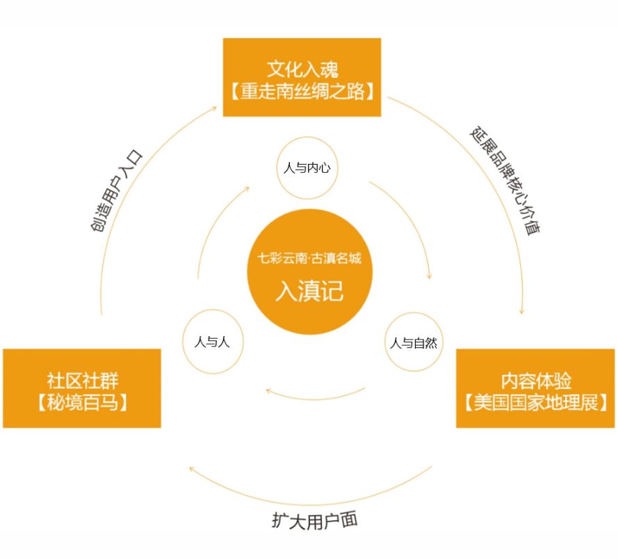 因此,集团需要立足大局,以“初见云南”、“初识古滇”、“探索云南”、“纵情古滇”四大事件营销为基础,结合全年不间断的“云南范儿”云南生活方式全球发布会,通过持续性、系列化的传播动作,重构人与人、人与自然、人与内心的关系,为全国消费者提供古滇“一天新似一天”的生活体验。