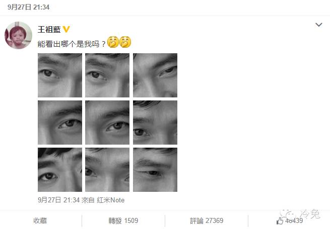 这个疑题在第二天便得到了揭晓,王祖蓝的微博发出了他的眼技模仿秀:
