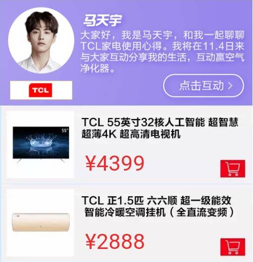 这个双十一,买买买也要宇众不同,必须买得实惠买得超值买得高颜值实力派,11月4日TCL品牌创享官马天宇将来到京东家电大咖问答活动,与大家互动分享他的智能家电生活心得。