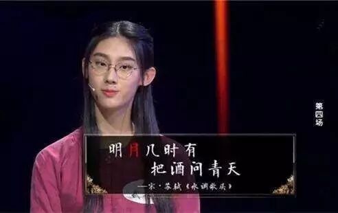 在《中国诗词大会》第一环节的个人追逐战中她一人横扫全场,创下新纪录308分,成为第二季播出以来这个环节的最高分获得者!