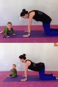猫牛式——非常适合拉伸中背部!你和宝宝面对面做猫牛式。