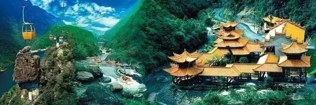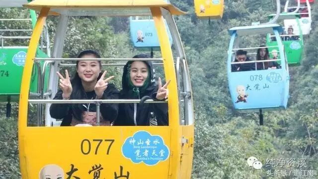 日丽风和缆车越山万壑奔流。