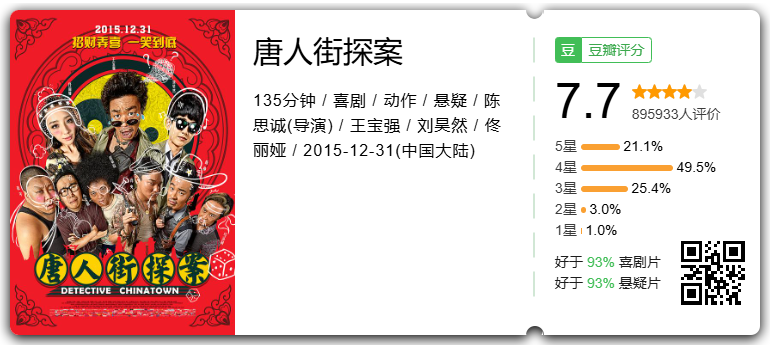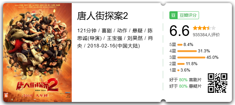 本片是陈思诚《唐人街探案》系列的第四部,但不是续作意义上的第四部,应为前传,前三部豆瓣7.7、6.6、5.3。