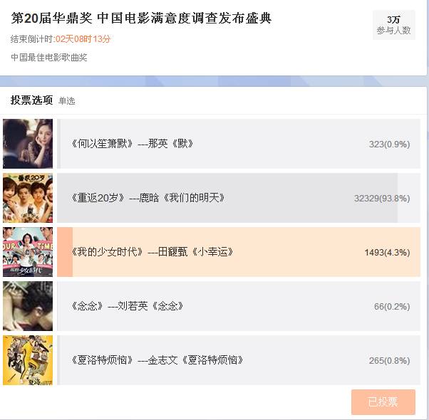 第20届“华鼎奖-中国电影满意度调查发布盛典”即将于2016年9月7日在香港九龙湾国际会展中心盛大举行,小芊根据微博投票情况,来给大家分析下目前的投票情况!