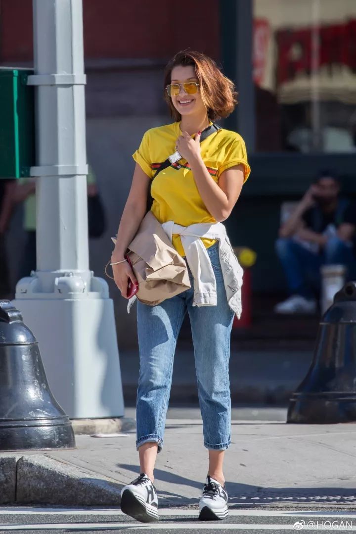 时髦精Bella Hadid,最近成了Ta的忠粉。长卫衣、T恤牛仔,鞋子的设计感让休闲的搭配更具细节。