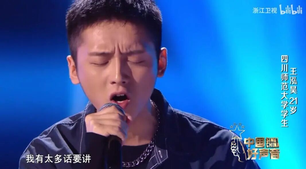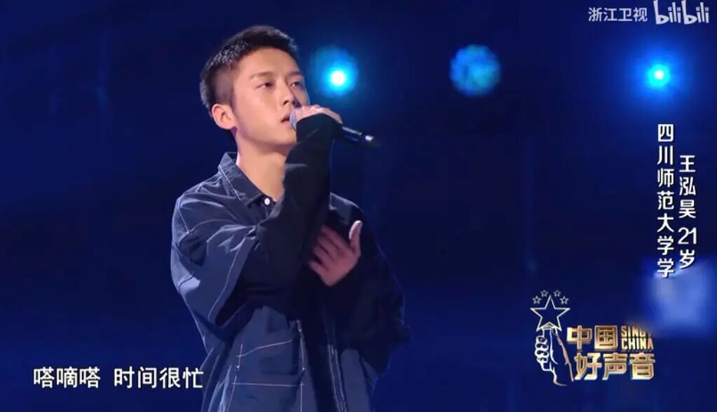 21岁的王泓昊,四川师范大学的学生。他一开口,张碧晨就按捺不住表扬:声音挺好听的。又厚又亮。