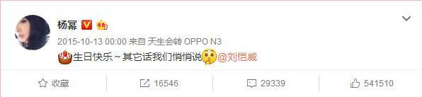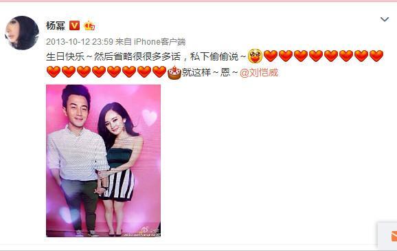 10月13日是刘恺威的生日,杨幂守着时间为刘恺威庆生送祝福。