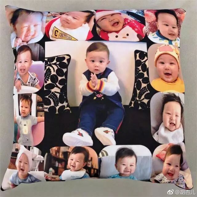 胡杏儿晒出一个抱枕,上面全是小奕霆的照片,最中间的一张应该是最近拍的,看起来就是个大宝贝了。