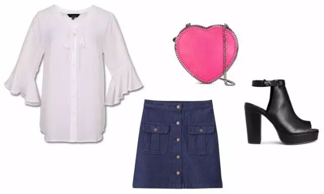 ▼白+蓝是一对完美的CP,衬衫+丹宁裙会更有女人为些,非常适合跟另一半出街约会穿。