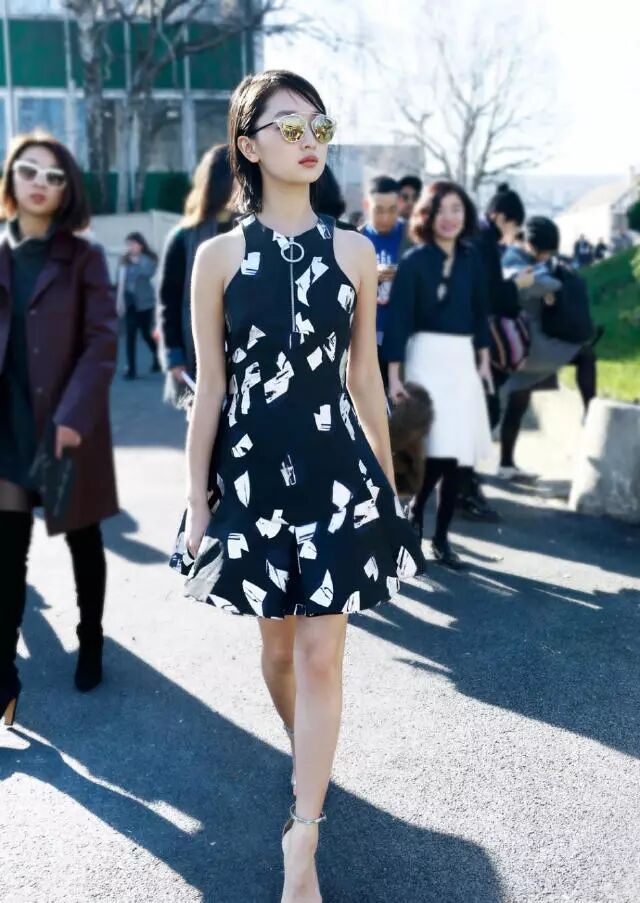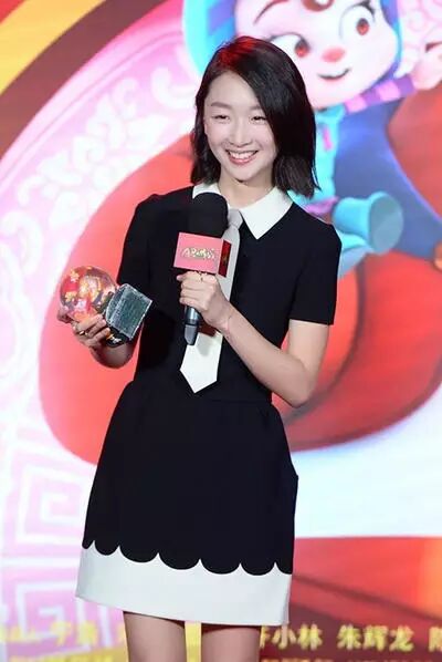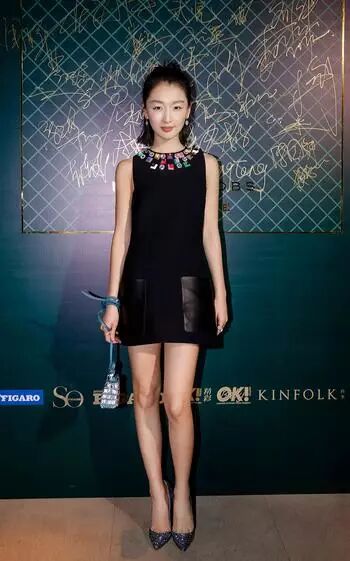 周冬雨身穿的小黑裙,白色领带和裙摆的拼接,淑女中又带点俏皮,年轻时尚。