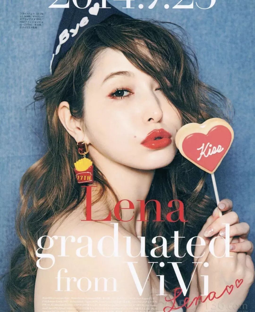 藤井莉娜宣布在《vivi》杂志毕业,祝贺她毕业的那一期,杂志还随增lena的一本写真集,可以说是豪华毕业礼了。