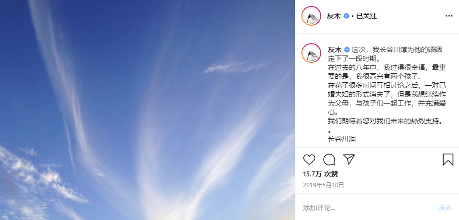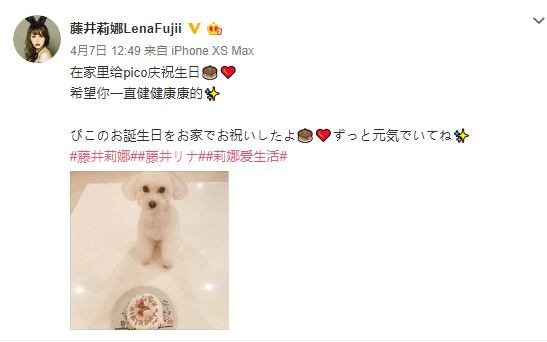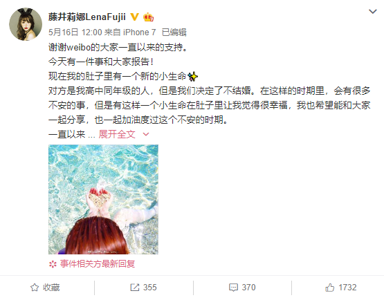 前几天,日本名模藤井莉娜悄悄地在微博上更新了状态:
