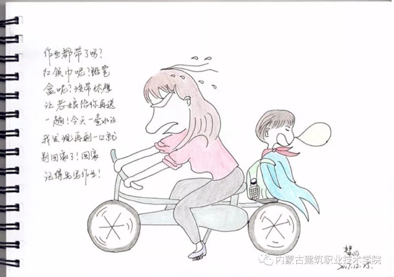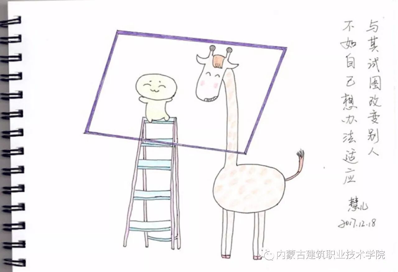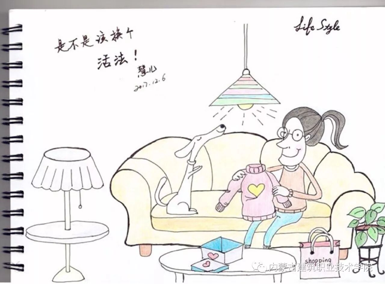 繁忙的行政管理工作间隙,亦或与家人茶余饭后的晚上时光,兴之所至,或临摹,或原创......郭慧敏老师只用简练之笔,几个卡通人物与超萌的小猫小狗便跃然纸上,再辅之以三言两语文字,真的是童趣毕现,让人好生喜欢!
