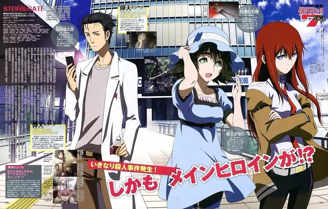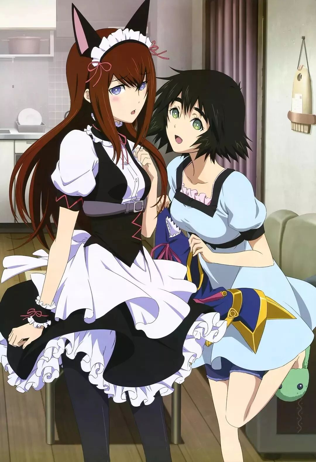 冈部伦太郎和牧濑红莉栖是本作主角,相比系列其他作品,这对恋人是全系列最具人气的角色。牧濑红莉栖的人设就具有相当的萌感,从外貌来说白色衬衫能够显出她的线条,外面披着的外套与红色领带很有洒脱感。平时看上去比较高冷,实质上却是个典型傲娇。设定上又是天才。而在剧情中牧濑红莉栖性格使然,经常毒舌攻击冈部伦太郎,熟络起来以后又很为别人着想,而且有着自我牺牲精神。实际上只要有傲娇的王道属性,基本上都会很有人气。这样让她在人气方面能够压倒青梅竹马。恋爱故事中常有一种套路,突然出现的角色A会抢走青梅竹马角色的喜欢对象,人称“青梅竹马不敌天降”。真由美和牧濑红莉栖就是这种关系,不过故事进程没有安排俗套的修罗场,而是安排的如同两人同时落水,到底救谁的选择。动画中的第二阶段也给真由美很多发展空间,而且第二阶段的高潮也是她。但有趣的是正是为了救真由美,客观上加深了牧濑红莉栖与冈部伦太郎的关系。所以,这次青梅竹马又变成了衬托,全篇都在烘托那两人的恋情。第三阶段,冈部伦太郎唯一能依靠的只有红莉栖,戏剧最后的高潮也是围绕红莉栖进行的。因此,本作事实上没有出现恋爱之争,只是单纯的恋爱冒险活剧。从开始就注定了官配路线,从而沿着一条线描写。保持了作品完成度。