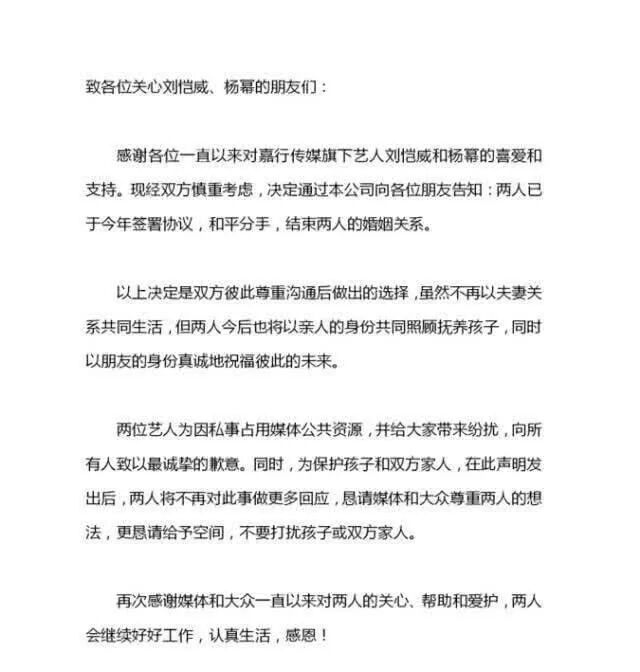 杨幂和刘恺威真的离婚了!连官宣都出来了,很多人听到这个消息一开始只是愣了一下,然后心想:终于实锤了!因为这两人每隔一段时间就要传离婚,大家都麻木了。