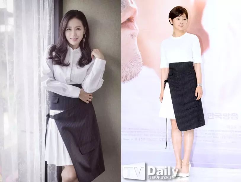 当孙艺珍和朴素丹撞衫?一个是称霸影视剧多年的玉女代表,一个是小荷才露尖尖角的小花,两人眼光竟一致,看中了这条独特的裙子。