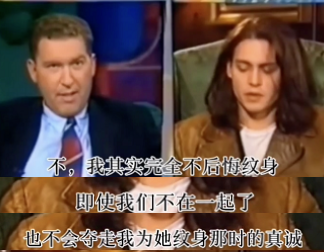 德普说:不,我其实完全不后悔纹身,即使我们不在一起了,也不会夺走我为她纹身那时的真诚。