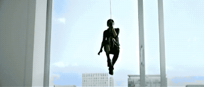 《夺宝联盟》中饰演飞檐走壁的女贼,亲自上阵吊着钢索在天台上奔跑……