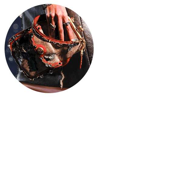 今年的鞋履以短靴居多,短靴并不是近两年流行的袜子款,而是复古满分的小粗根儿,配上亮片装饰,摇滚范儿十足。还有上面带有刺绣装饰的涂鸦款式,则有一种西部牛仔的feel。
