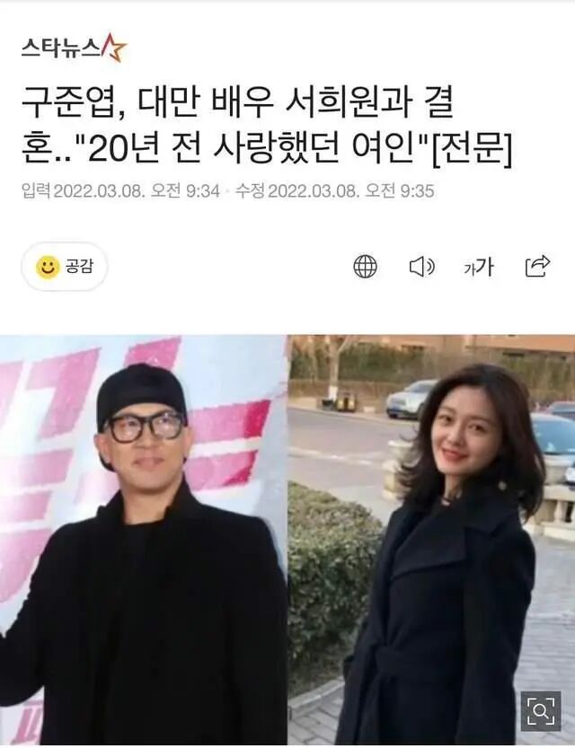 据媒体爆料,大S已经与与韩国歌手具俊晔已经领证结婚,并且得到具俊晔承认!一下子惊炸人们三观。据悉具俊晔为徐熙媛前男友,如此一来,汪小菲剧情出现反转,难道是徐熙媛早已暗渡陈仓,与前男友复合在先吗?
