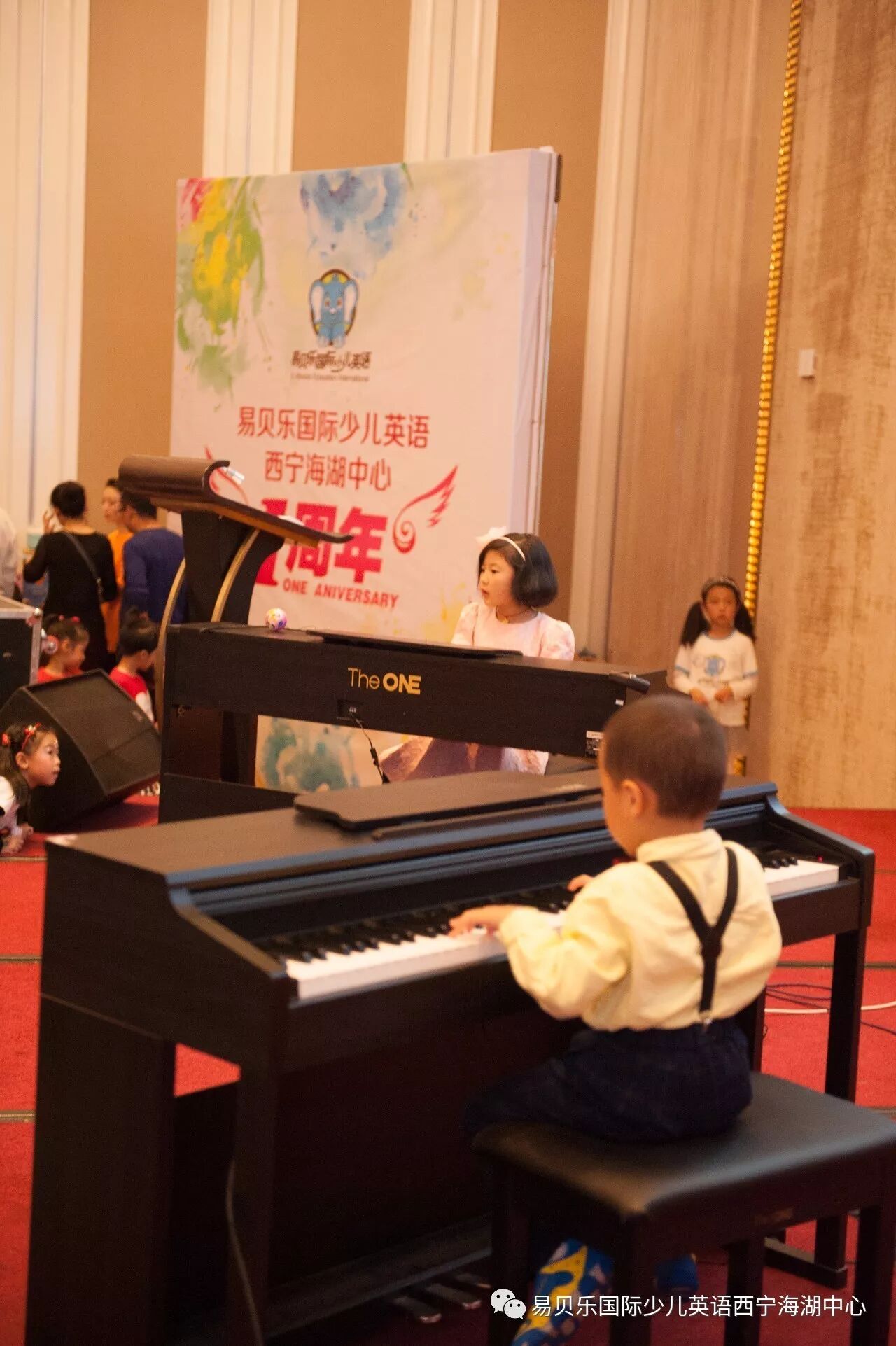 易贝乐国际少儿英语西宁海湖中心一周岁了!在这个喜庆的日子,易贝乐的老师邀请学员跟家长们共同分享了这一年来在易贝乐发生的点点滴滴,一同见证了易贝乐的成长历程!孩子们盛装出席,欢聚索菲特酒店,以教学成果汇演的形式庆祝一周年生日!