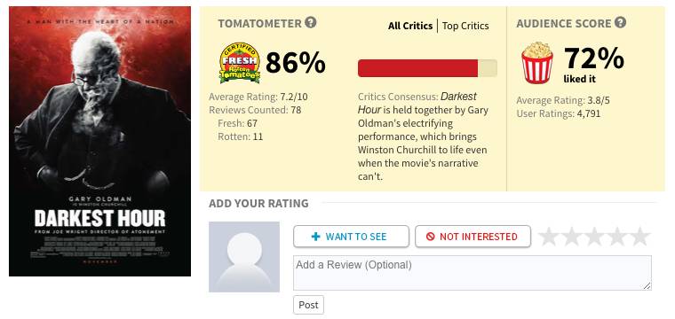 已经看过了的叔倒是觉得还不错。90届的奥斯卡影帝,饰演丘吉尔的加里·奥德曼实在必得。