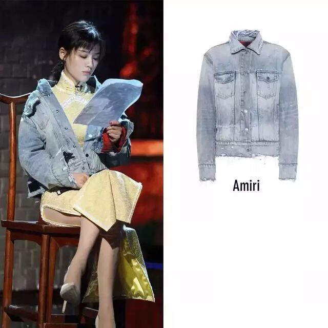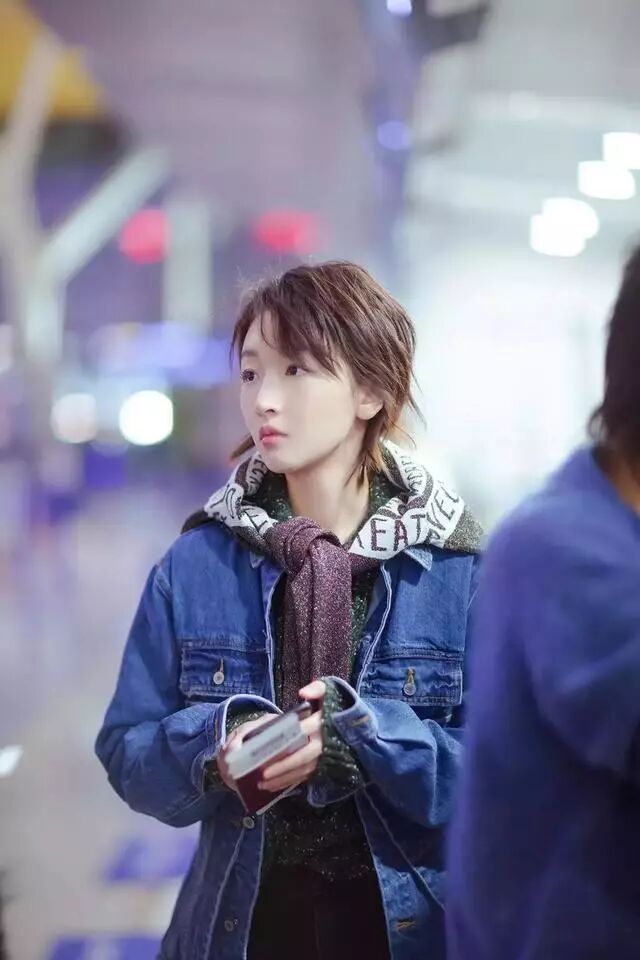 而作为好姐妹的周冬雨,在机场也穿了件牛仔外套,设计有点特别。