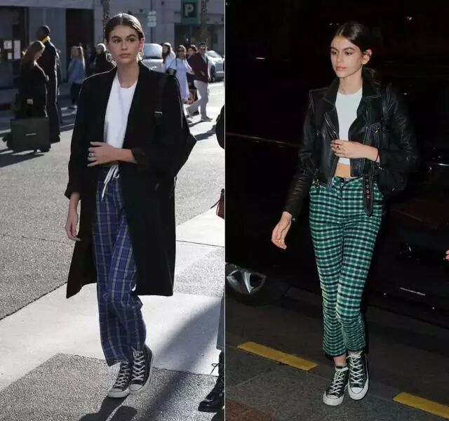 CindyCrawford的女儿Kaia不仅长了一双大长腿,衣品也是棒棒的。最近两套的复古格子裤我还蛮种草的。