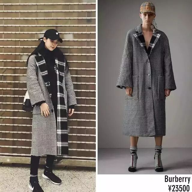 仔细一看不得了,人家的军大衣要1万多块,来自Burberry。