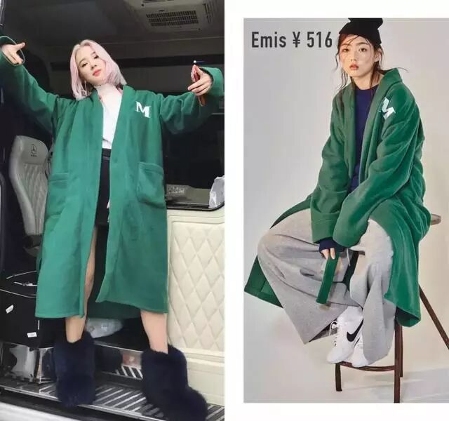 Irene是我一直在关注的韩国博主,也经常发她,她比很多明星穿得好看多了。最近这件绿色外套是来自韩国设计师品牌Emis,看起来像是睡袍?挺喜欢的。