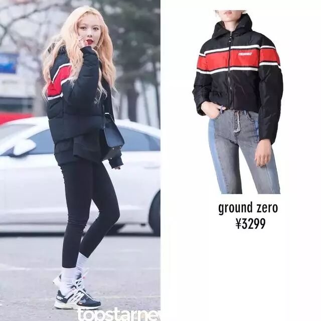 韩国真的很冷,泫雅穿的是今年爆款ground zero的外套。