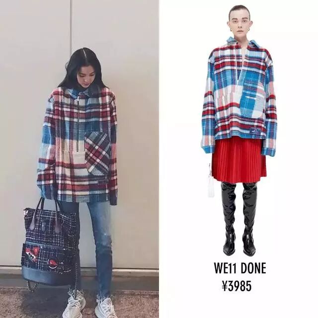 还有一件红蓝白格的oversized卫衣,来自权志龙姐姐的品牌we11 done。