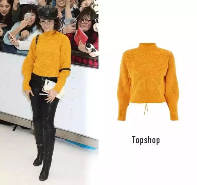 美国流行女歌手Camila Cabello,最近这件姜黄色毛衣还挺好看的,来自Topshop,看了瞬间想买件,配黑色裤子穿。