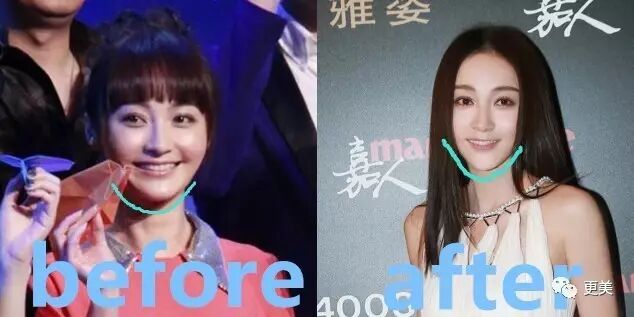 早期的姚笛脸非常圆,脸颊两侧肉肉很多,有大饼脸的嫌疑,现在已经是椭圆形的鹅蛋脸了
