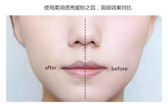 正是樱花纷飞时,用一抹甜蜜妆点自己,蜜粉除了定妆赶走大油田外,还修饰了脸部的瑕疵,让瓷白美肌全天绽放无限迷人魅力。如此无暇的底妆小编也是看醉了...(对比之下肤色更自然,而且脸部瑕疵也消失了)