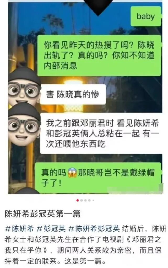 爆料一出,就有人去扒陈妍希和彭冠英,一挖还真挖出了点啥。