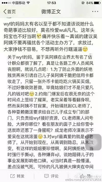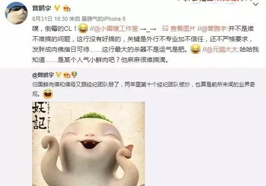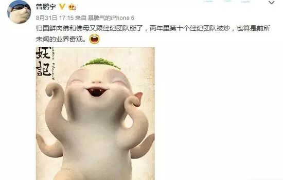 吴亦凡2014年退出韩团EXO,回国一路发展顺遂,但却在今年被曝出“约炮”丑闻。之后,成龙的公司宣布与吴亦凡签约,其演艺工作也算是重新进入正轨了。谁知,这才没过多久,就有圈内人士踢爆吴亦凡又因为妈妈和经纪团队闹掰了。知名经纪人曾鹏宇昨晚在微博上爆料称,一名回到大陆发展不久的小鲜肉和其母亲又换掉经纪团队,且是2年内的第10次,更讽刺这是“前所未闻的业界奇观。”