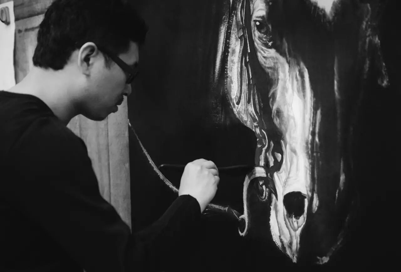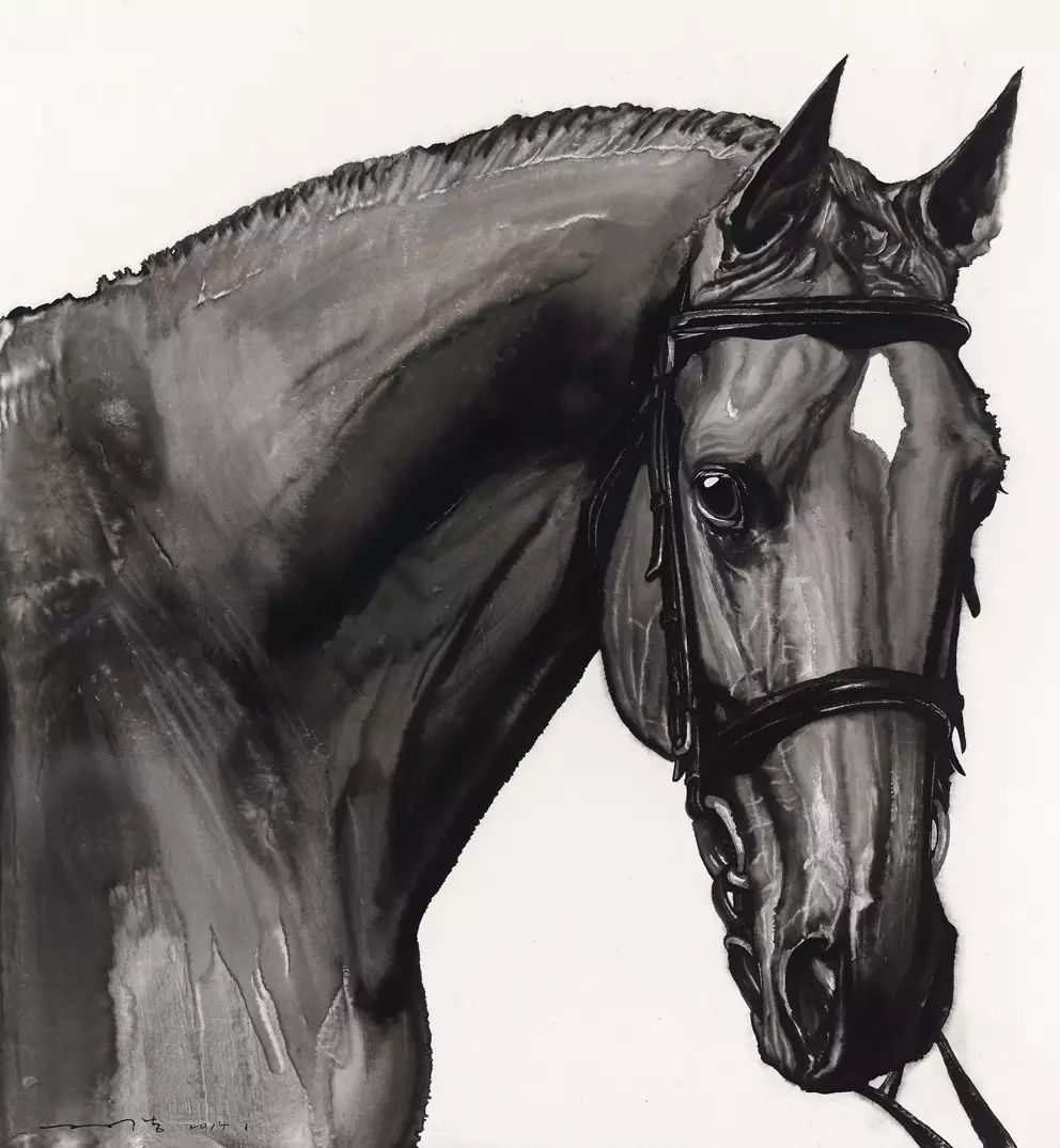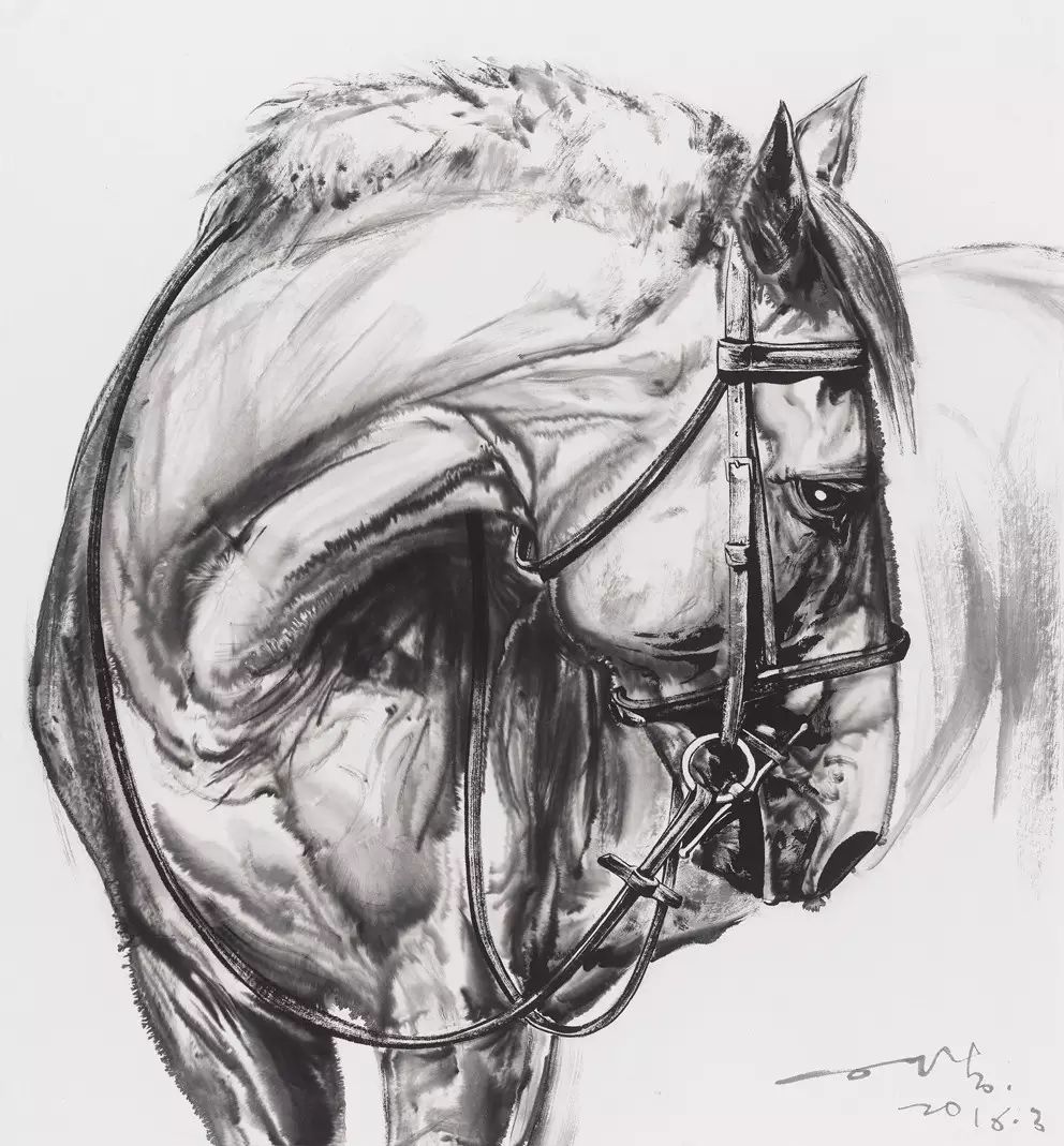 关于孙浩的水墨画创作,大家现在所熟知的是他画的“马”。最初的系列,是一组围绕着“马”的题材的“肖像”作品。孙浩放弃了历史传统的语言程序,却藉助于水墨写意的扎实功力,既为“马”写照塑型,又以“肖像画”的方式突出了画面的精神性表达,可谓达到了“形神兼备”。事实上,“马”是古今中外很多画家热衷的画题,也有不朽之作留存至今。孙浩画“马”,不是为了血战古往今来的艺术大师,却是为了追求某种单纯呈现。在孙浩的创作中,“马”的肖像有意味地拉近了观赏者与画面之间的距离。这种“近距离”,不是视距上的单纯拉近,而是心理上的情感拉近。也正是在观赏者“近距离”的审看下,“马”的内在精神才逐渐得以浮现。亦如孙浩所言,“马”的肖像就是“人”的肖像,就是“我”的肖像。其深层含义即是画家试图通过精神性的折射去反映当代人的自察、自省和自觉,醒示大家改变既有的认识和习惯,并在内心的不断叩问之下幡然醒悟。