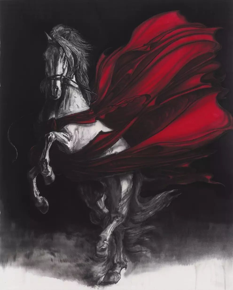 孙浩 《红骑士》 纸本水墨 350×216cm 2016年