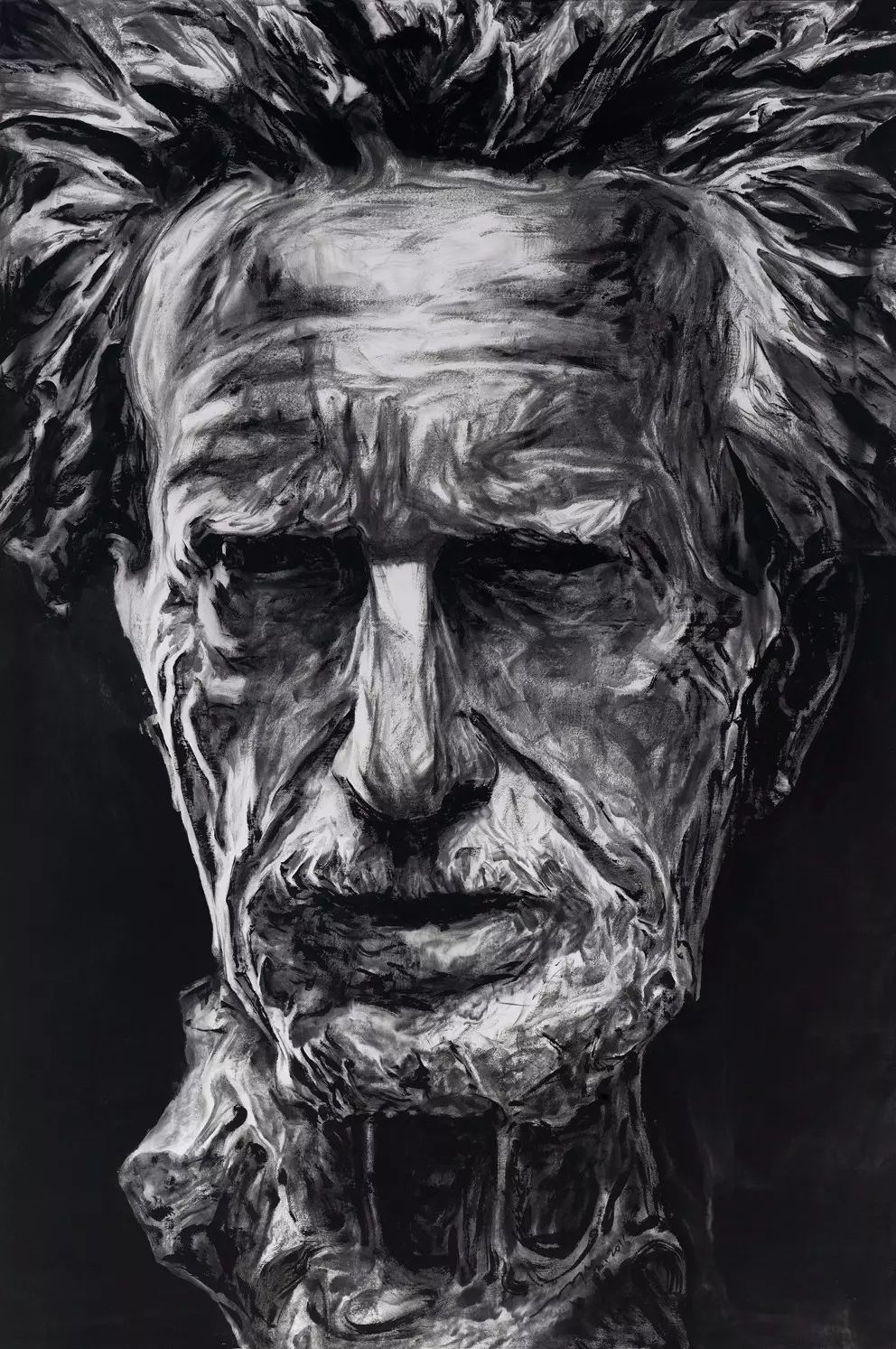 与此同时,始自《庄周之马》(2013年),孙浩也开启了“马”系列中的单幅性创制。如《庄周之马》,在由墨色平涂而成的背景上,一马侧面进入画面,头微微低垂,似在冥思之中,幽古想象的氛围油然而生。“幽思”,在传统文化中总是和“怀古”联系在一起的。实际上浸淫水墨越深越久,艺术家们对于传统文化的认识也会更加深刻透彻,而作为当代艺术的水墨如何面对和反映历史经验也是一道必答题。对于传统文化,孙浩赞赏“尊古而不追古”的原则,在具体的创作上画家也有意识地通过自己的艺术去探究、去溯源历史传统的复杂来源,并在不断追问之中更加明确了当下的自我立场。2014年孙浩画了一些佛像,这些佛像或许只是局部,或许只是一块碎片。艺术家刻意保存了各种历史的痕迹以及破损的现状,甚至不采取任何的美化加工,其目的就是以历史化的破损对应时间的刻度而形成所谓的“怀古”,强化了“幽思”的意境,进一步打开想象的空间。在全球化的文化背景下,孙浩亦将“怀古”的目光投射到了世界文明的传统之上。为此,画家还远赴意大利、法国、英国、德国的文化遗址和艺术博物馆考察,在西方历史文化的长河中沉浸徜徉,不久之后即以古希腊、古罗马时期的雕像为母题,不断挑战水墨丰富表达的极限。而与佛像作品所不同的是,在这一系列作品中孙浩更立足于去表达力量和勇气,并由此凝聚起水墨的巨大张力和厚重深沉。