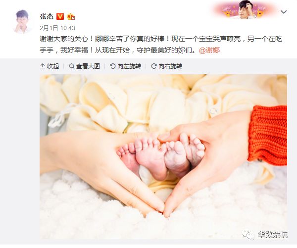 在0热搜的日子里,娱乐圈内的喜事倒是集中爆发了。张杰谢娜的双胞胎女宝~